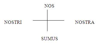 - ed infine, nella quarta riga, come soggetto del verbo sumus.
